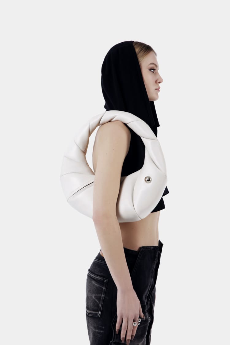ツイステッドバッグ|ホワイトレザーハンドバッグ
