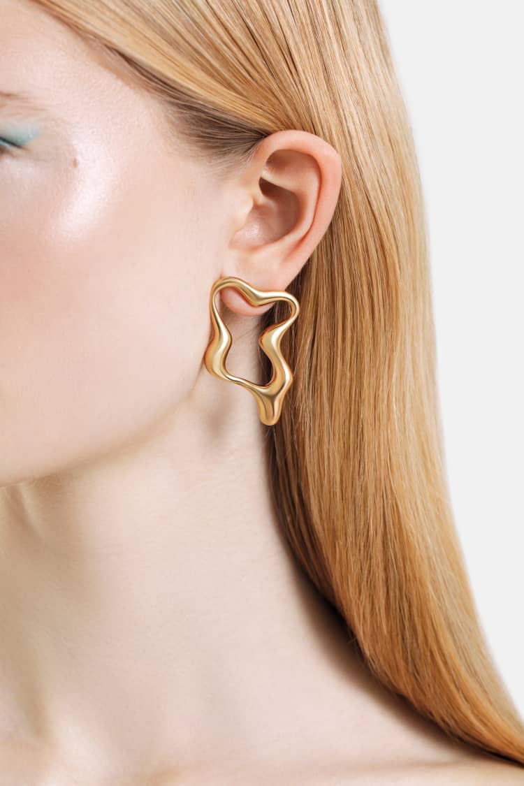 有機的なゴールドフープピアス